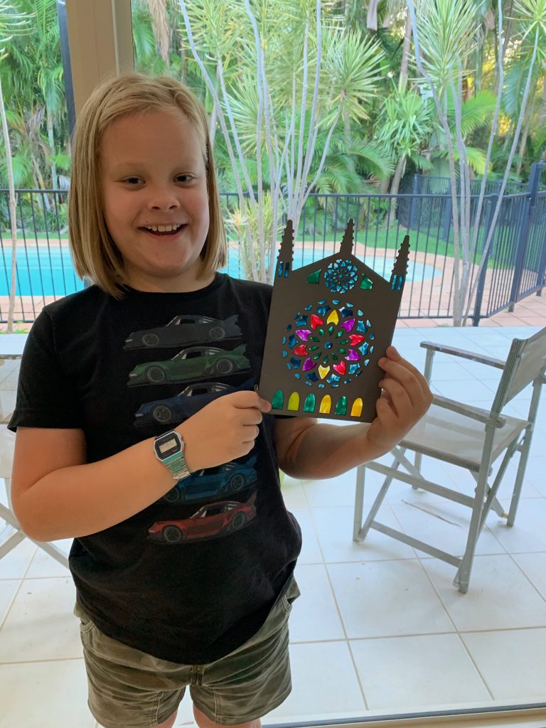 This month’s Kiwi Crate is on France. As part of that Atticus made a stained glass window based on those in Notre Damn.