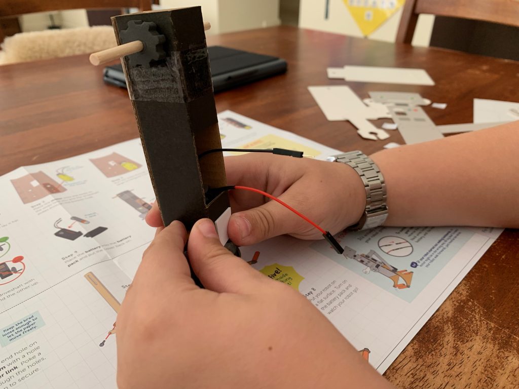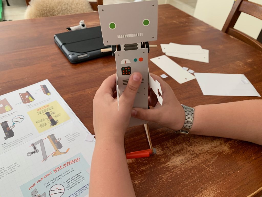 Atticus / Creative Arts / English / PDHPE / Science & Technology Meet Larry Atticus’s latest Tinker Crate is all about making his very own robot. Always start with the instructions. Connecting the wires. Making the arms. Attaching the arms. Atticus has called him Larry.