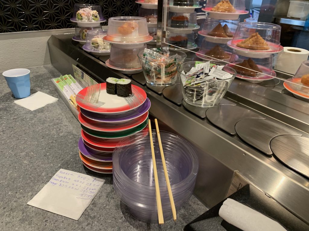 There’s always an opportunity to learn. Today the boys added up the sushi plates we ate and gave me the totals. When checked at the register they were pleased to see they were right.