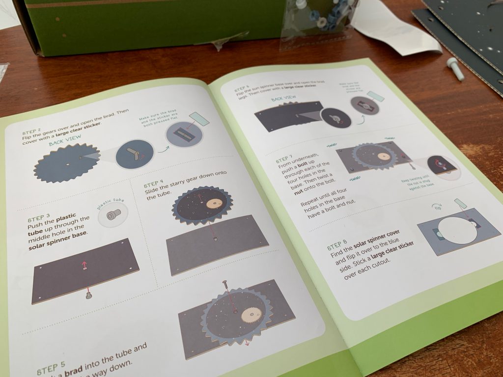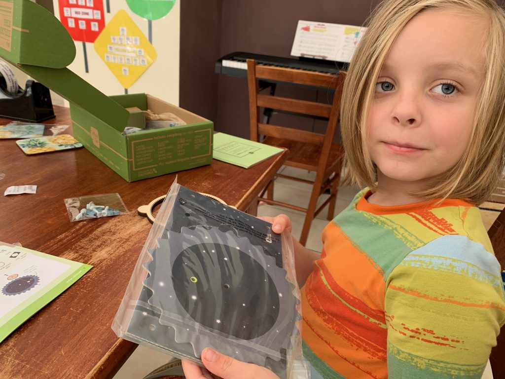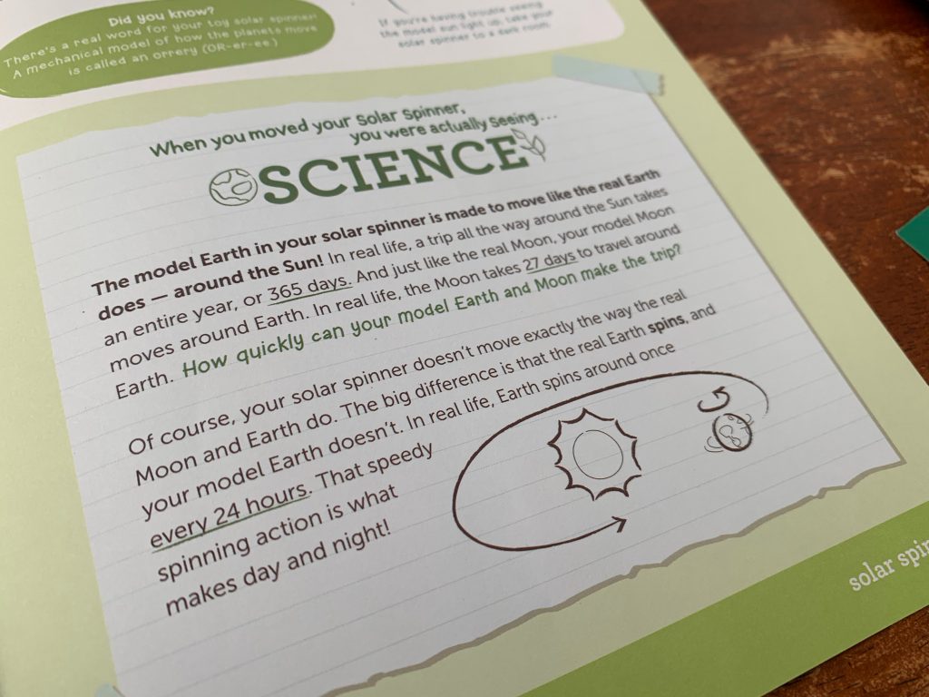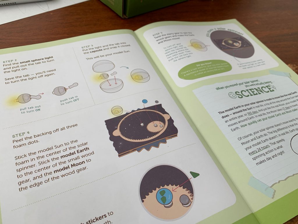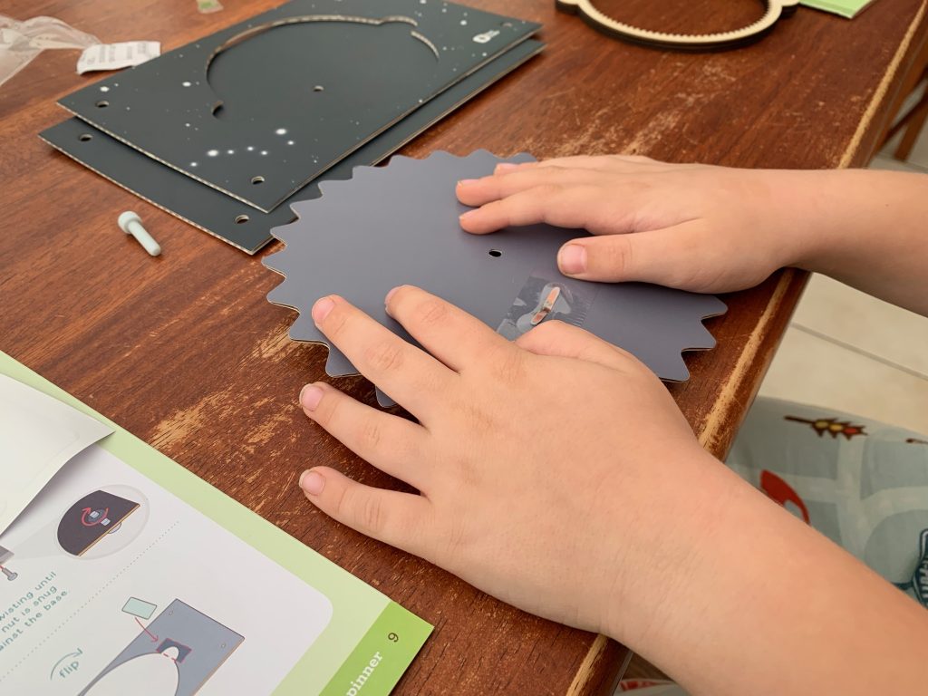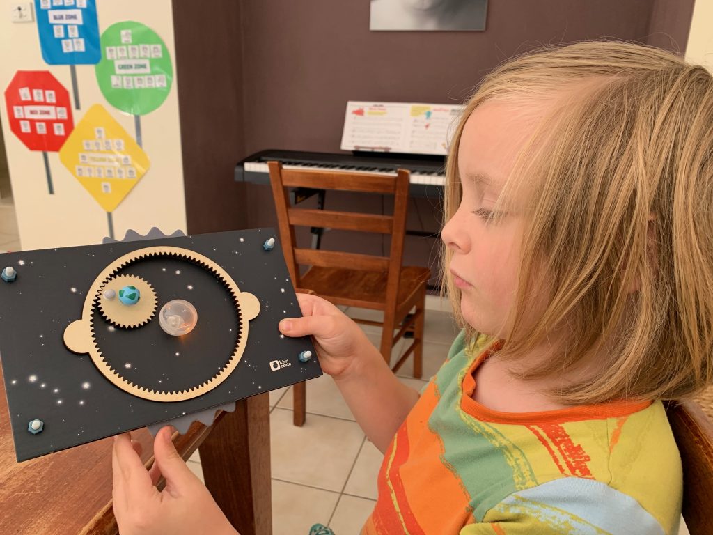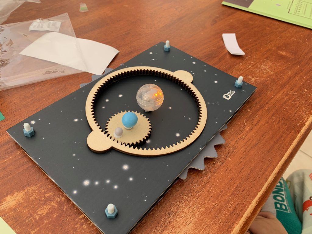 Otto’s latest Kiwi Crate is all about exploring the stars. In the first activity he gets to play with gears and use them to engineer a model system of the Sun, Earth, and Moon.