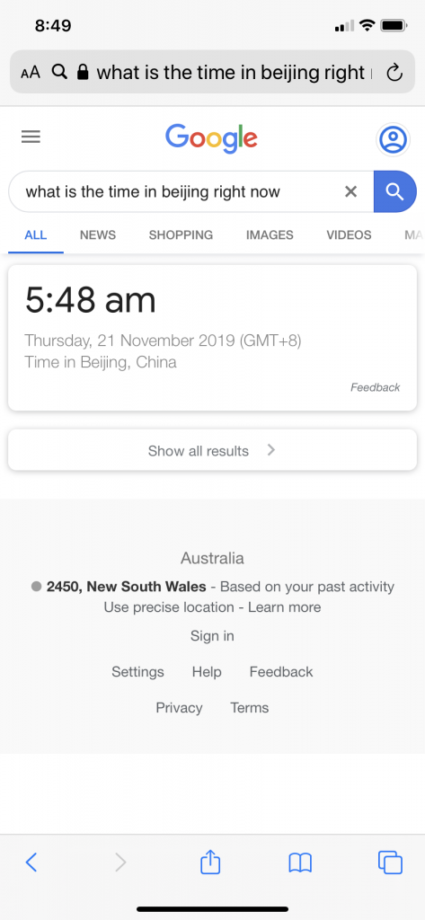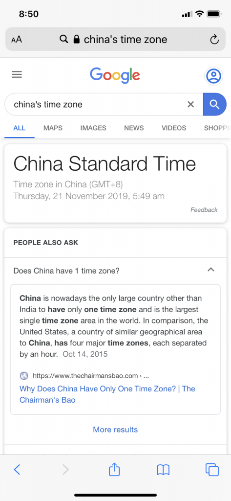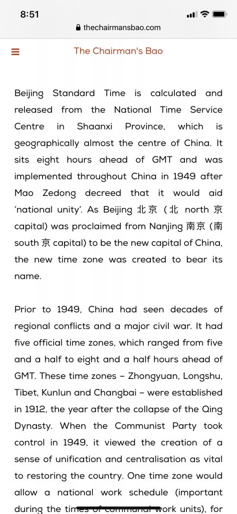 We then decided to test what we learnt the other week about there being one time zone in China. And yes there is. It’s called China Standard Time.