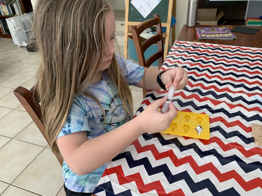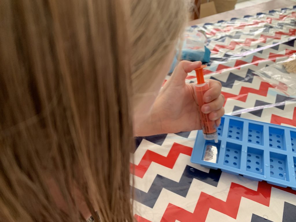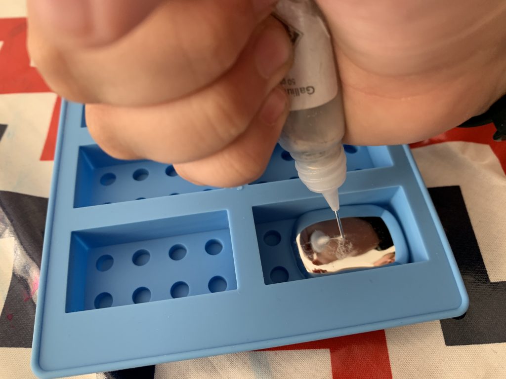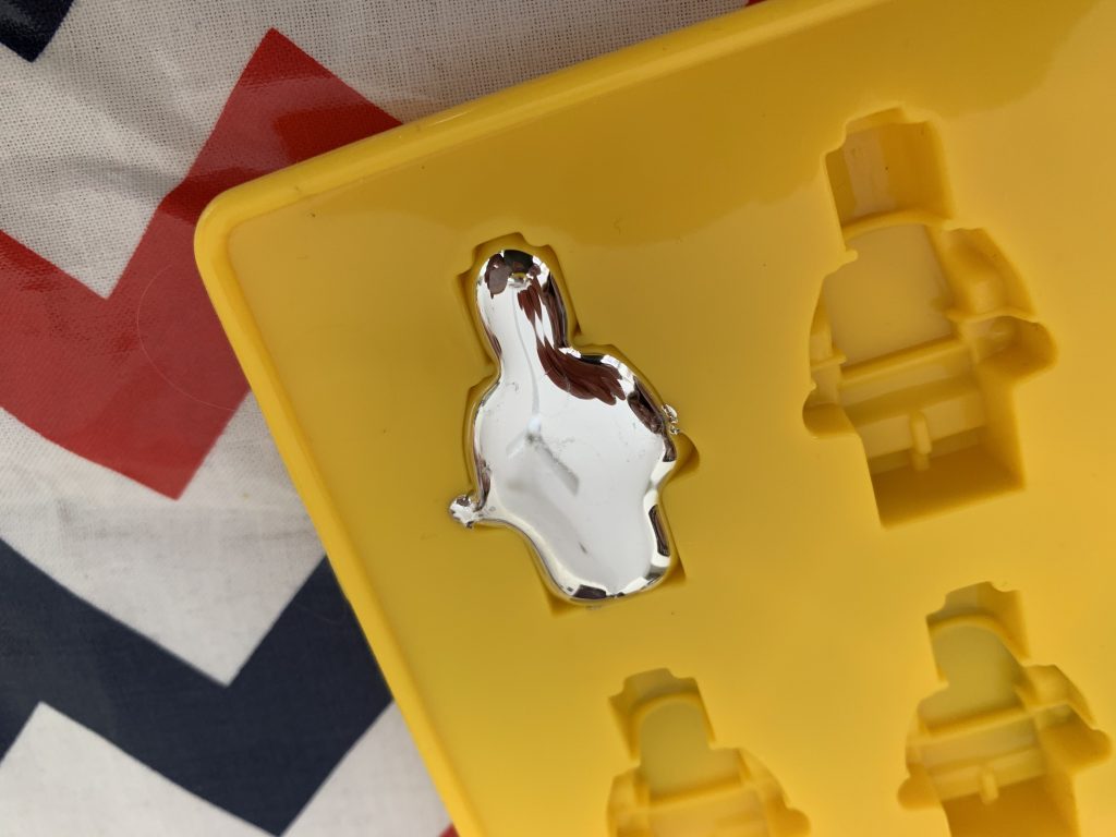 Once the Gallium had changed state the boys poured it into our Lego moulds. We all agreed it looked incredible.