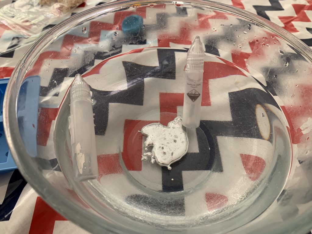 Atticus insisted he could draw the Gallium up in a syringe and pour it into water and it would stay together. I was skeptical but he was right.