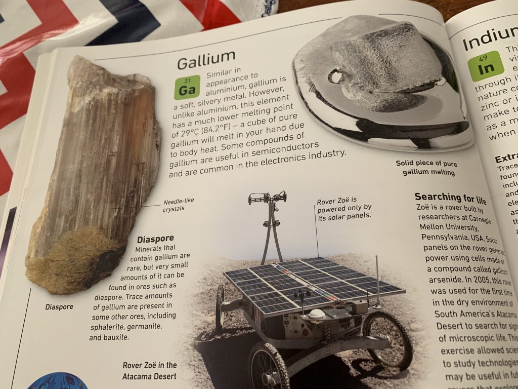 We pulled out our book on Elements and looked up Gallium. We discovered it’s in the Boron Group and are common in semiconductors.
