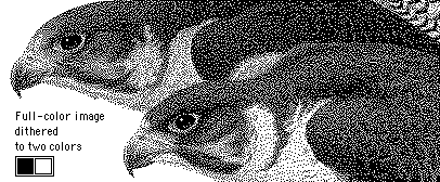 Full-color photographs may contain an almost infinite range of color values. Dithering is the most common means of reducing the color range of images down to the 256 (or fewer) colors seen in 8-bit GIF images. Dithering is the process of juxtaposing pixels of two colors to create the illusion that a third color is present.