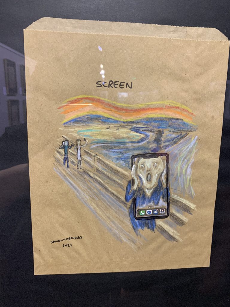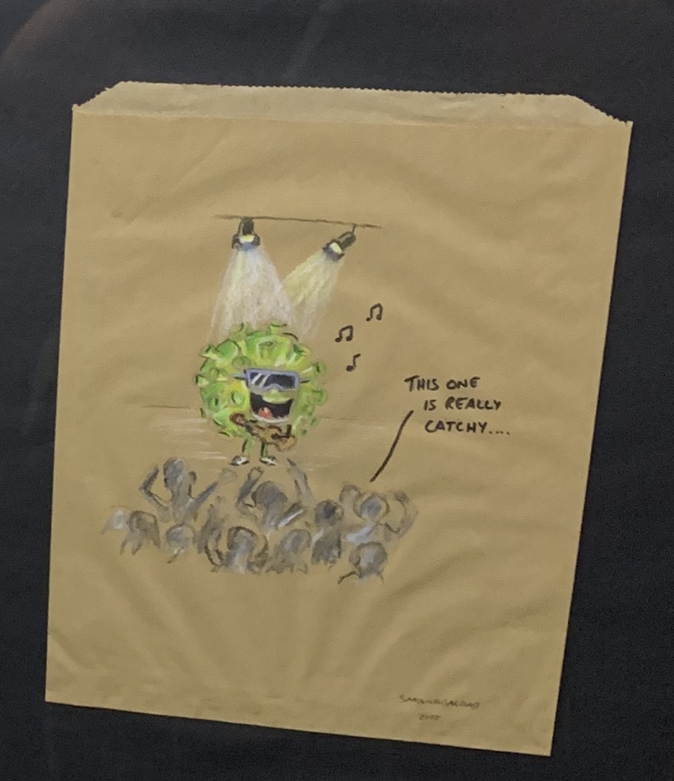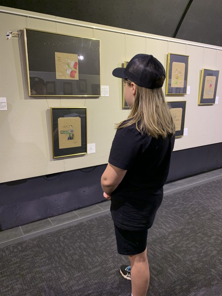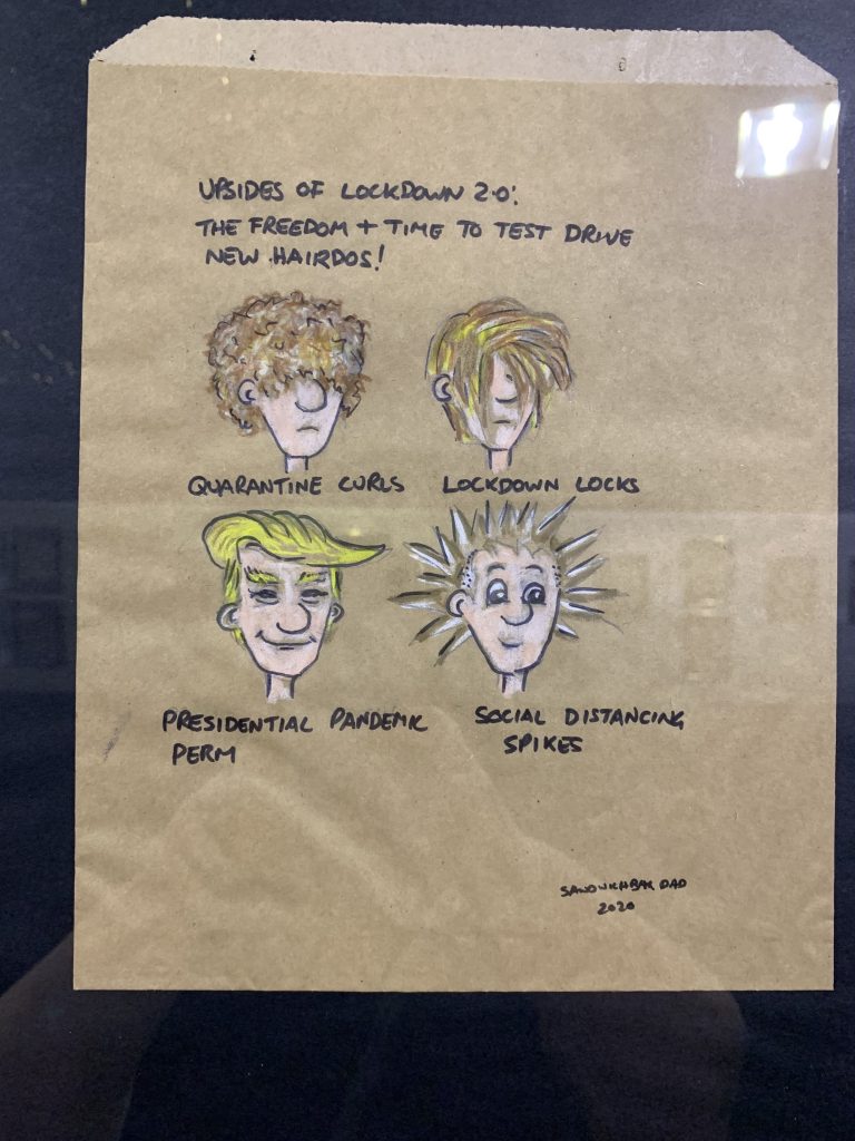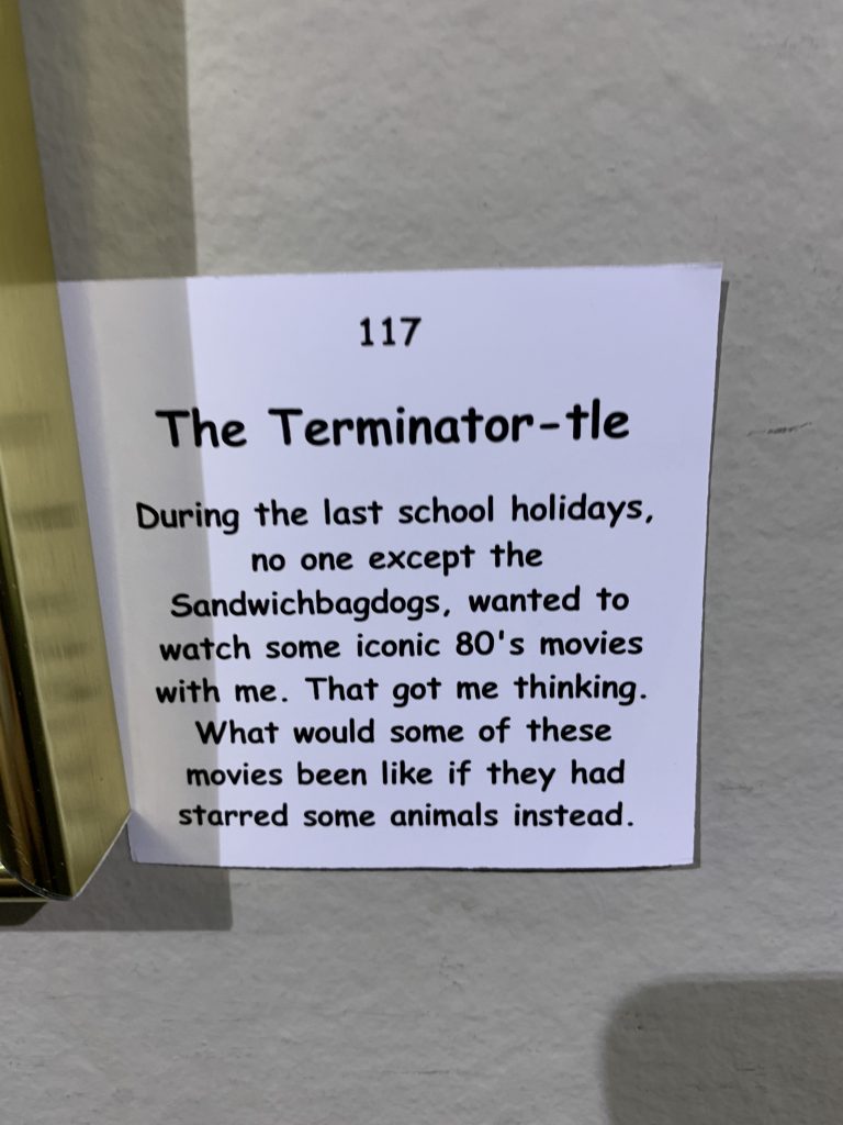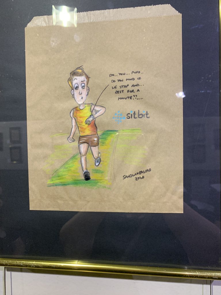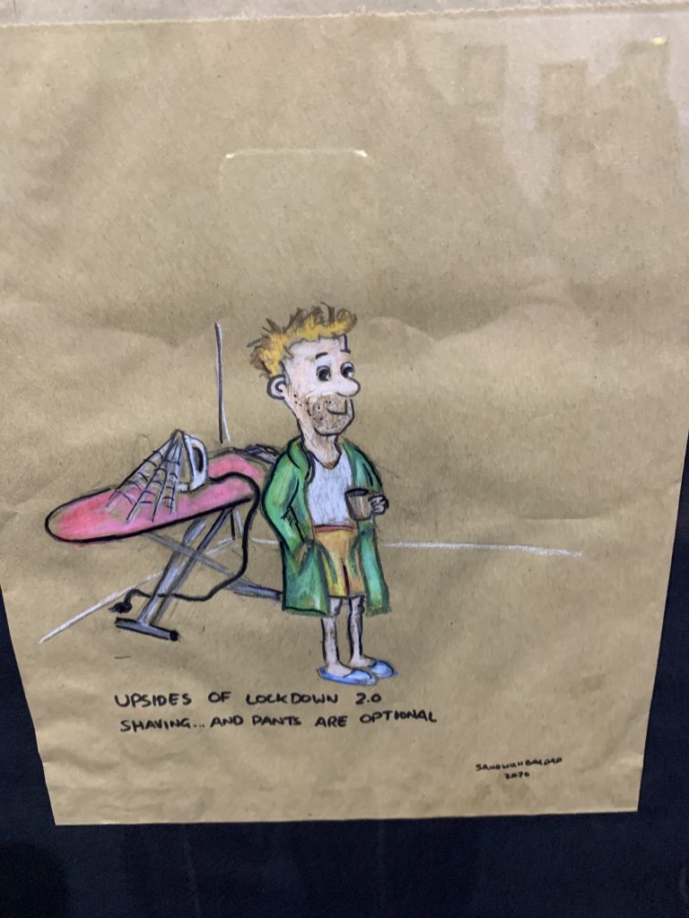 We visited The Cartoon Gallery today to see an exhibition by The Sandwich Bag Dad. The dad, Dave, has been drawing cartoons, dad jokes and bad puns on his kids lunch bags for 9 years.