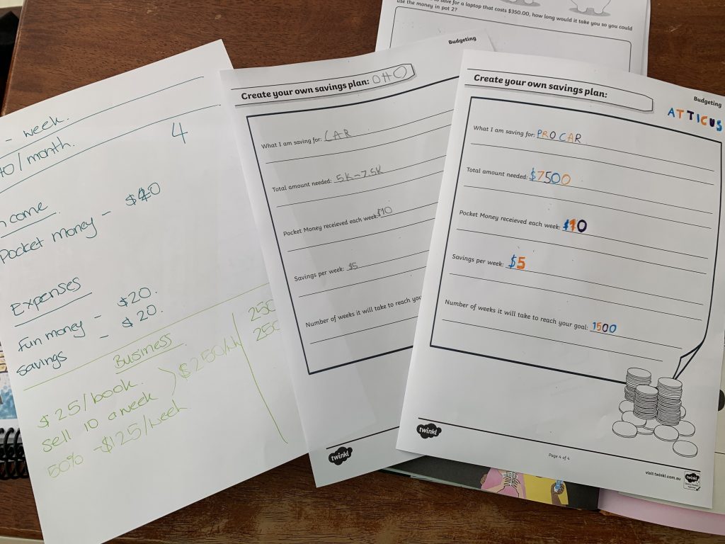 We learnt about budgeting today. Both boys created a savings plan and were surprised at how long it will take to get their first car putting away $5 a week and are now keen to learn ways to earn more money so they can save faster.